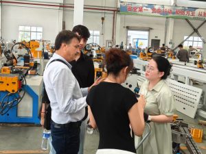 During the factory visit, we also took the client to visit the production workshop and processing site of the tube shrinking machines in person. Every link, from the selection of raw materials for the equipment, the assembly of core components to the parameter adjustment and finished product inspection during actual processing, was transparently shown to the client. At the same time, our technical team also conducted an on-site tube shrinking processing demonstration based on the shock absorber suspension and caster wheel pipe fitting samples provided by the client – in just a few minutes, the pipe fittings that met the client’s size requirements and quality standards were processed. After picking up the finished products and checking them carefully, the client highly praised the accuracy, surface smoothness and structural stability of the pipe fittings, and directly said “This is exactly the equipment we need”.